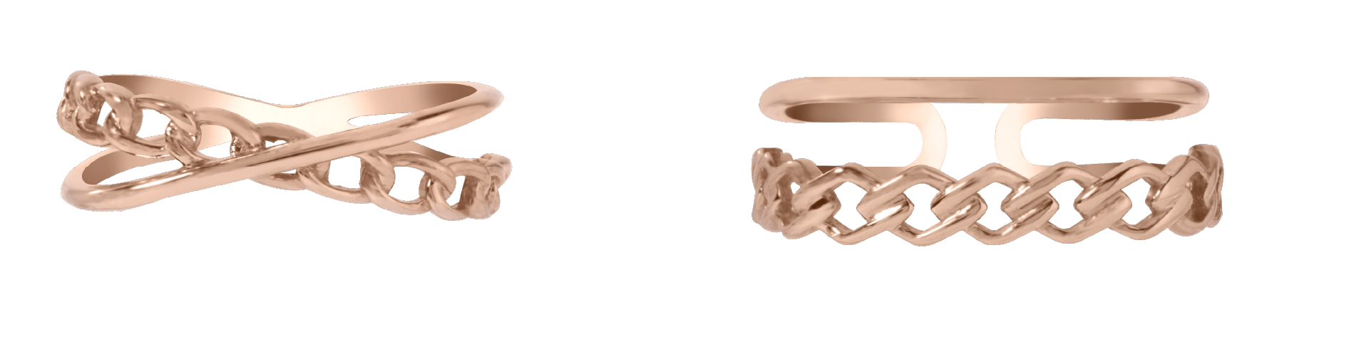 Where strength meets sophistication, these bold, interconnected designs combine luxurious 18K rose gold to create pieces that stand out with effortless style.