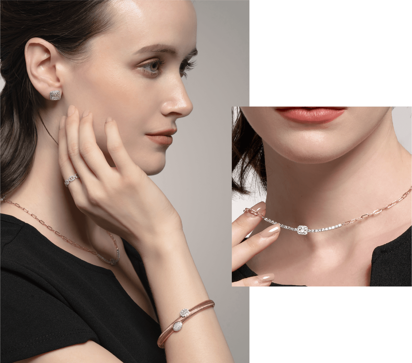 Crafted with sparkling diamonds and sleek 18K rose gold and white gold designs, these pieces bring effortless elegance to your daily wear.