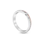 A symbol of timeless romance, this white gold wedding band features a dazzling central diamond and six delicate melee diamonds, accented with a touch of rose gold for added elegance.