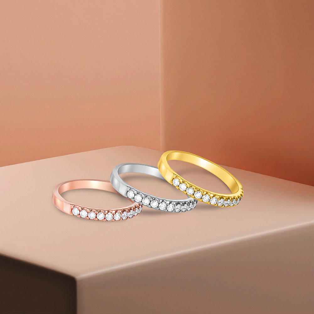 This 18-carat gold half-eternity bands, featuring a dazzling display of Le Lumiere diamonds (a mere whisper amongst diamonds, only 0.1% of the world’s finest).