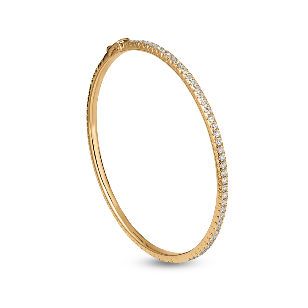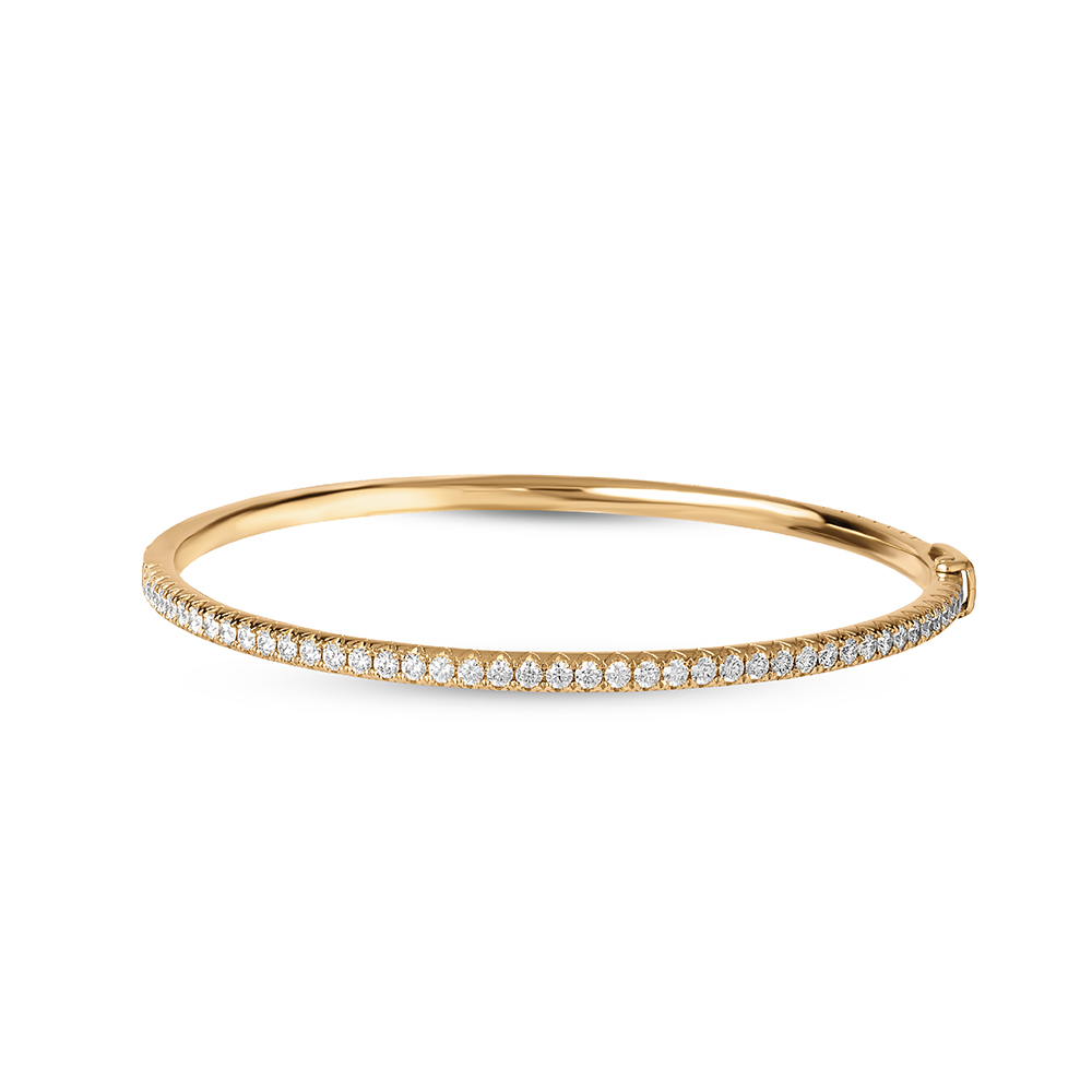 Radiate timeless elegance with this yellow gold bangle, featuring 75 of dazzling diamonds. Perfect for adding a touch of luxury to any outfit.