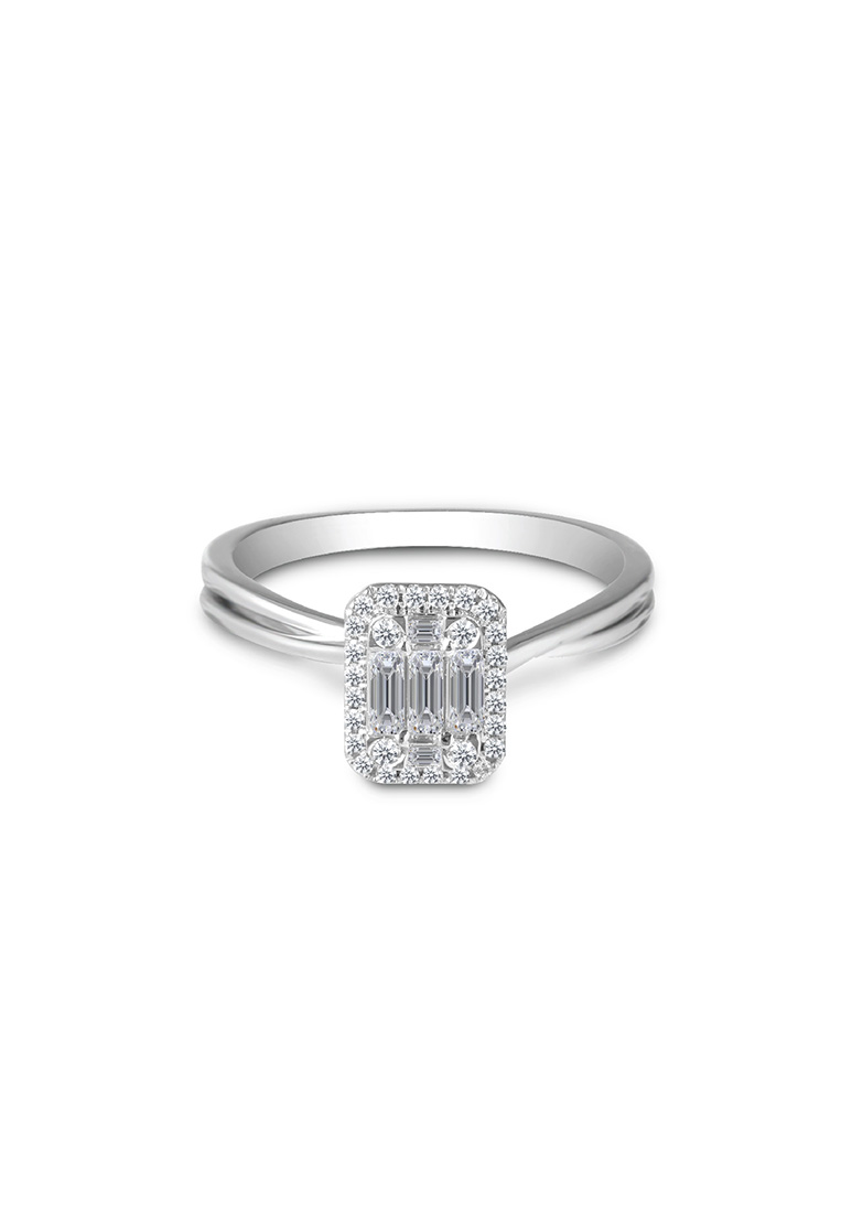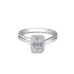 Embrace milestone moments with the Opulent Grace diamond ring, crafted from exquisite 18k white gold. Its halo effect dances with light, symbolizing enduring love and romance.