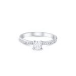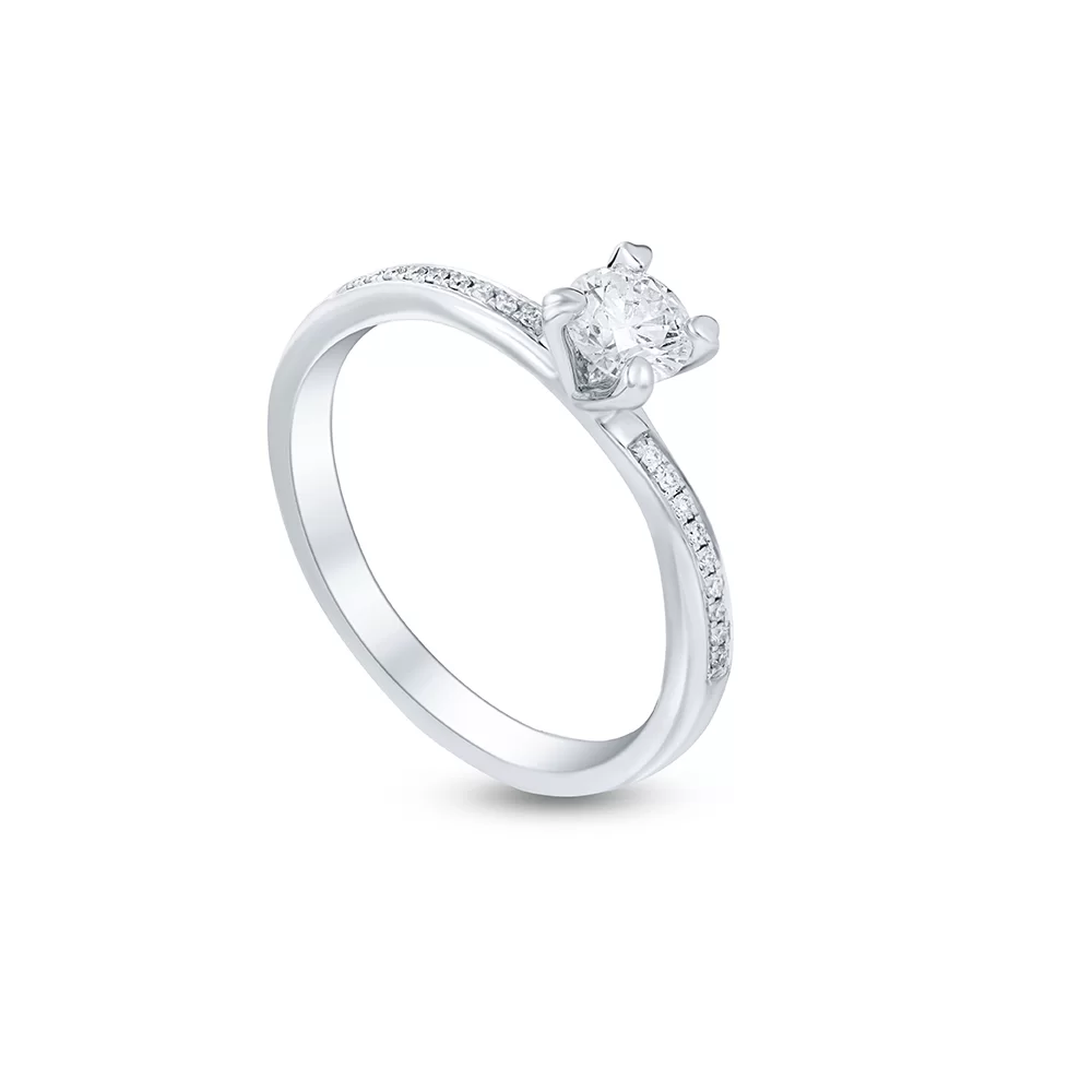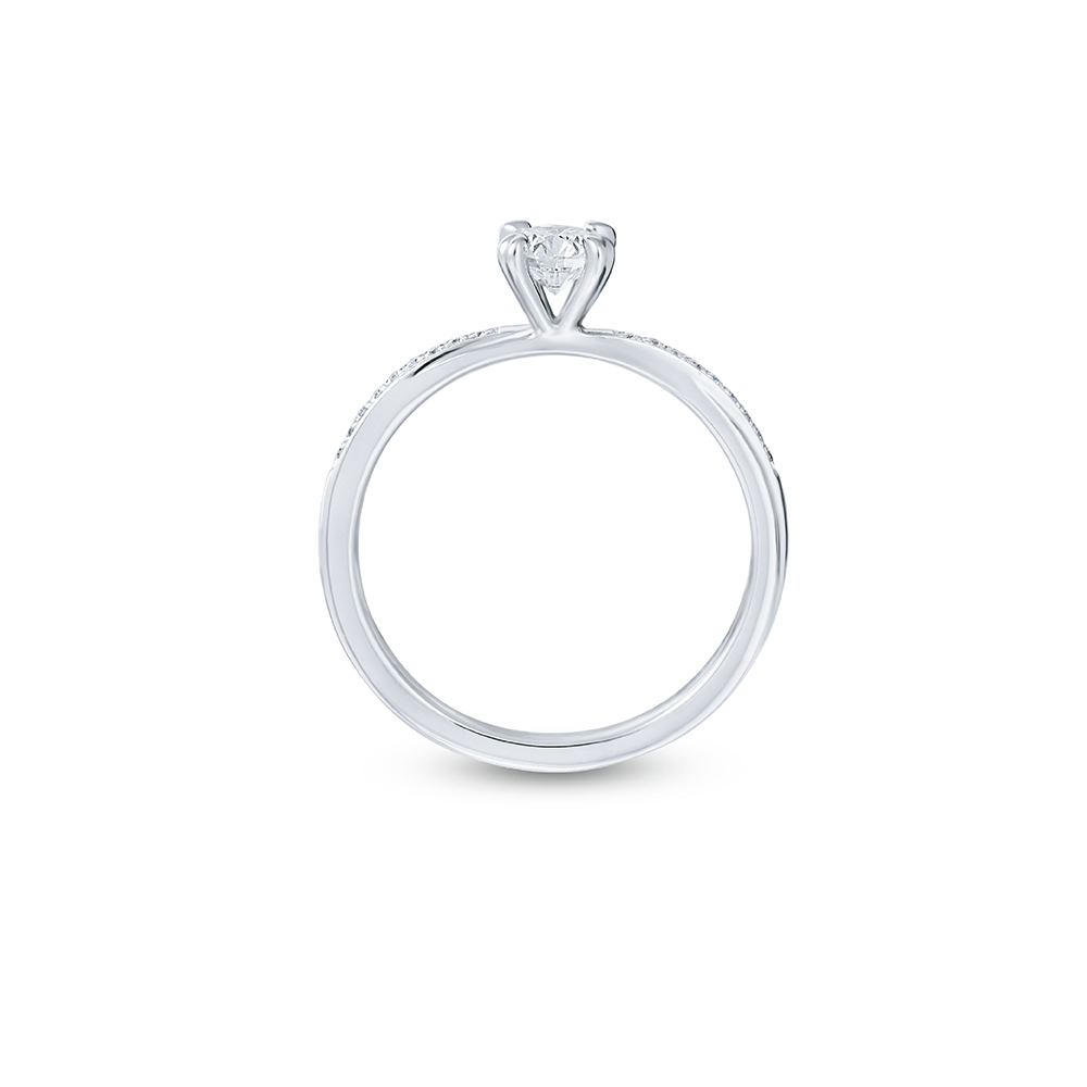 Minimal 4-prong ring with a sleek thin band covered with 18 pieces of sparkling small diamonds.