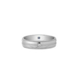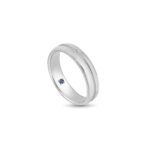 The Romantic Blue wedding band, crafted from Platinum (PT950) and adorned with a diamond, celebrates enduring love. Its blue sapphire inner lining symbolizes loyalty, creating a striking and harmonious look that beautifully reflects your journey together.